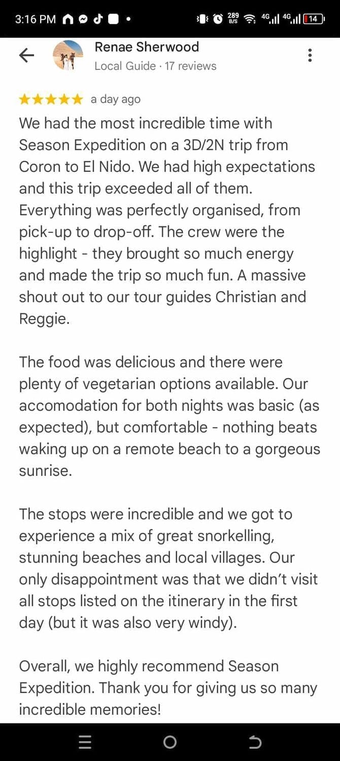 - Estimated arrival in El Nido: Between 3:30 PM - 4:00 PM
